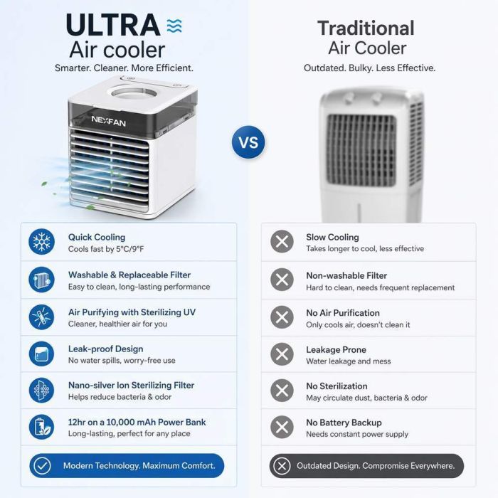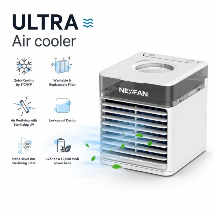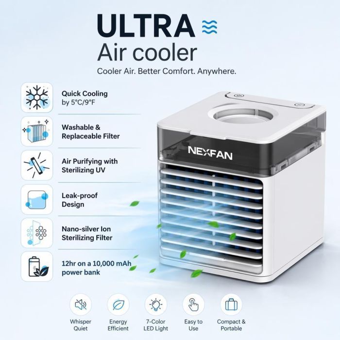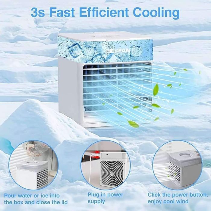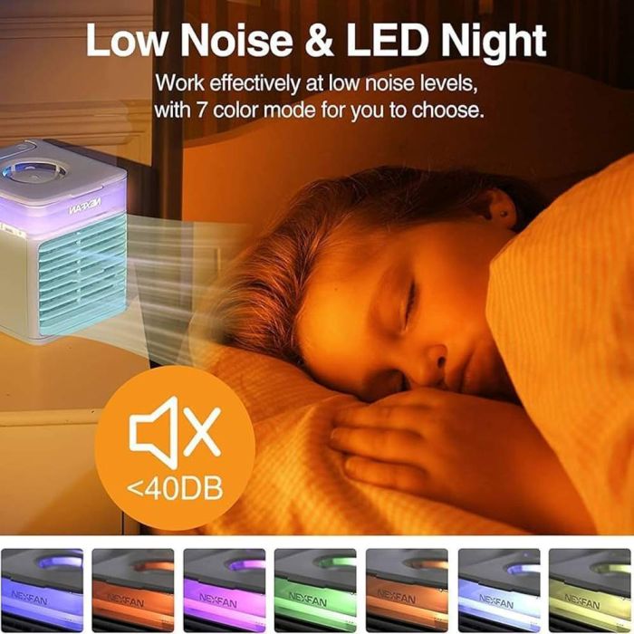 يبرد هذا المكيف الهواء بطريقة طبيعية آمنة مع رطوبة ناعمة وإضاءة ملونة. بـ 4 وظائف وخزان 500 مل و3 سرعات قابلة للتحديل و7 ألوان LED، توفر راحة شاملة للغرف الصغيرة