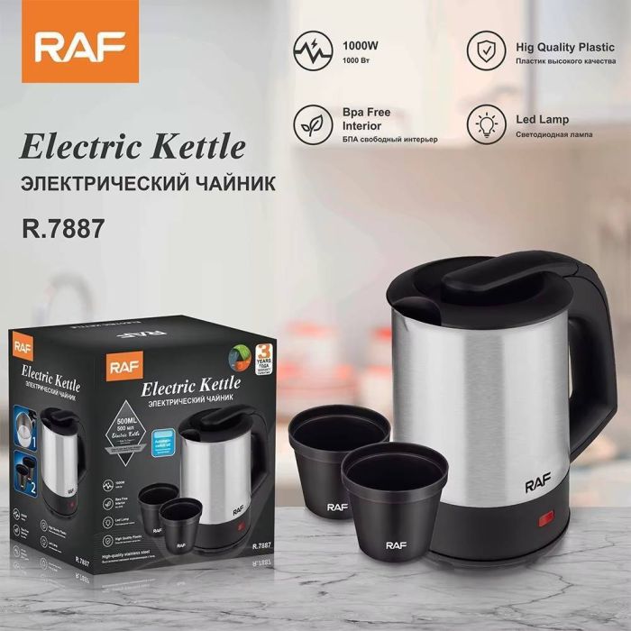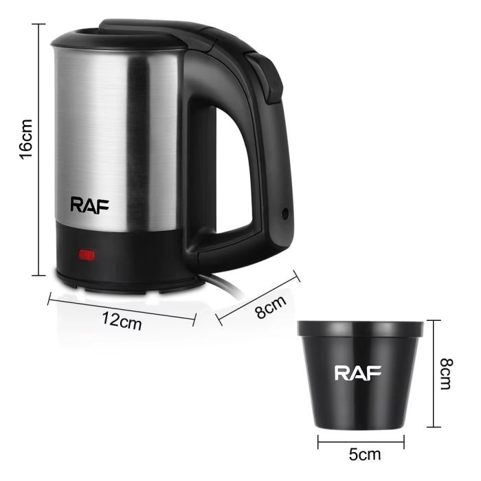 - غلاية سفر ستانلس ستيل 500 مل 1000 واط مع 2 كوب من RAF