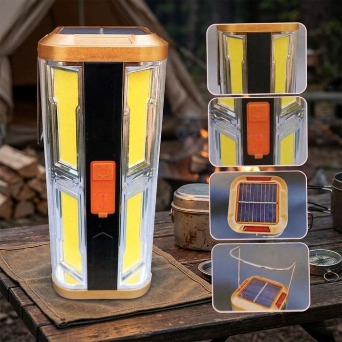 يوفر لك هذا المصباح إضاءة استثنائية بقوة هائلة تدعمك في رحلات التخييم وحالات الطوارئ مع ميزة الشحن المزدوج بالطاقة الشمسية أو عبر منفذ Type-C لضمان استمرارية العمل ومقبض علوي يجعله خياراً محمولاً مثالياً للمغامرات الخارجية