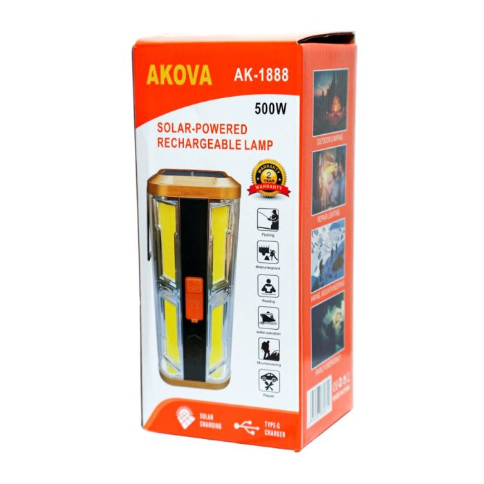 مصباح طوارئ 500 واط قابل لإعادة الشحن مع منفذ Type-C وشحن بالطاقة الشمسية من AKOVA
