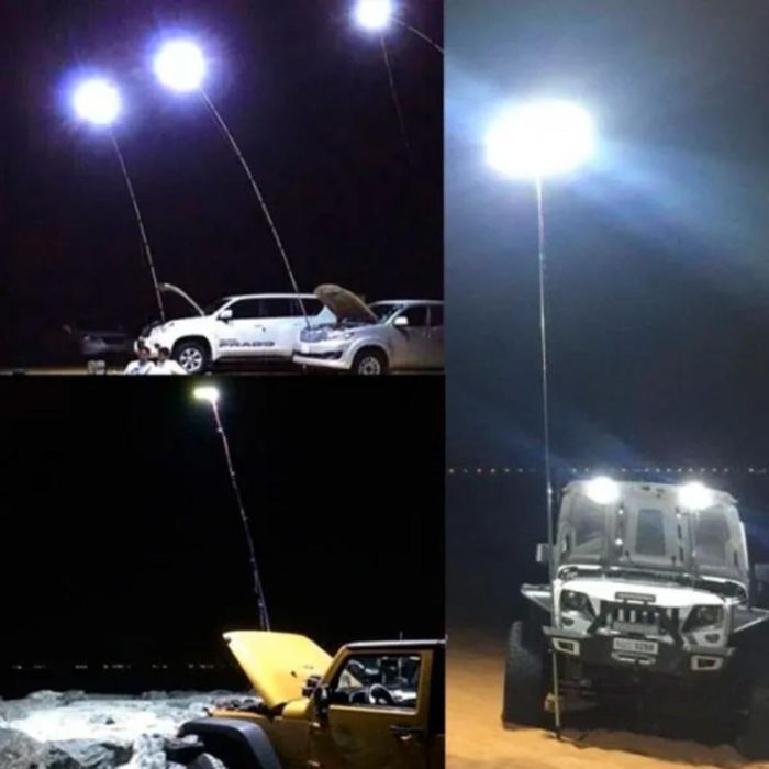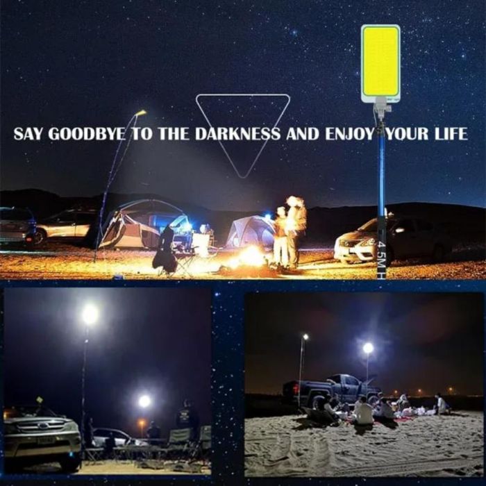 يتميز كشاف المخيم LED بعامود تلسكوبي طويل قابل للتعديل يسمح لك بتوجيه الضوء أينما تريد، كما يمكنكم ضبط الارتفاع كلما زادت المساحة المراد إضاءتها، مع 3 أوضاع إضاءة وسطوع يصل إلى 36000 لومن، يمكن أن ينبعث منها ضوء ساطع وناعم لتحديد اتجاهاتك بسهولة في الظلام، كما يمكنكم تشغيله بمجرد توصيله ببطارية السيارة أو أي بطارية 12 فولت