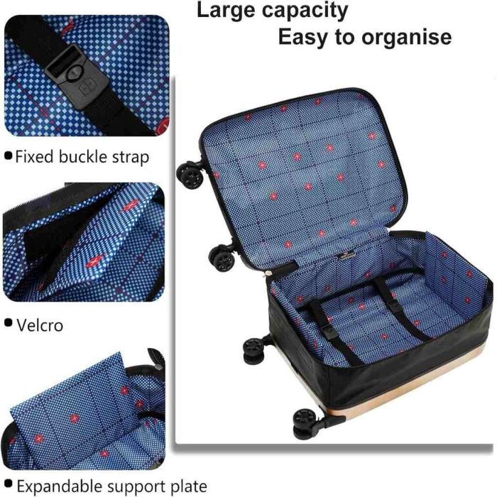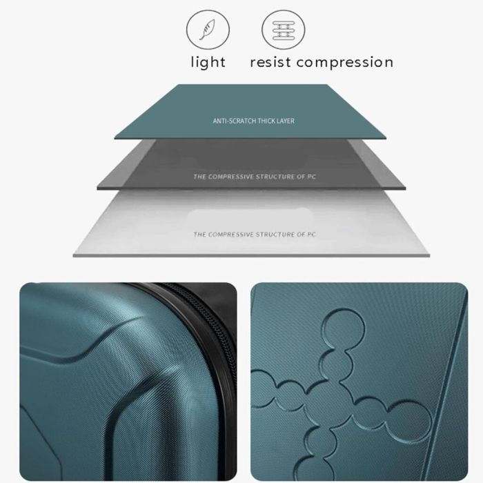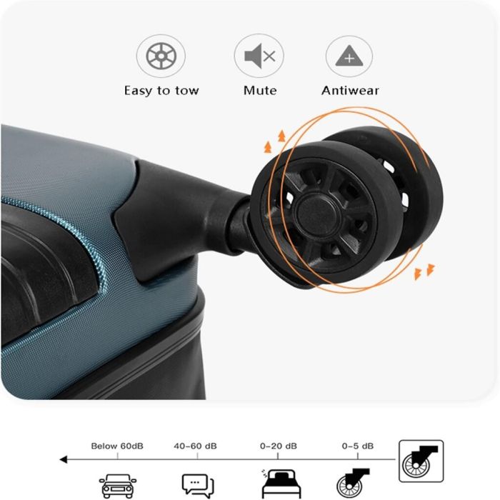 صُممت هذه الحقيبة من مادة ABS المتينة، ومزودة بعجلات صامتة تدور 360 درجة، لتجمع بين المتانة والحركة السلسة والسهلة في أي اتجاه، مما يجعلها خيارًا عمليًا لجميع المسافرين. سواءً كنت تتنقل بسلاسة بين المحطات المزدحمة أو تطويها بسهولة في المنزل، فإن هذه الحقيبة تتكيف مع نمط حياتك