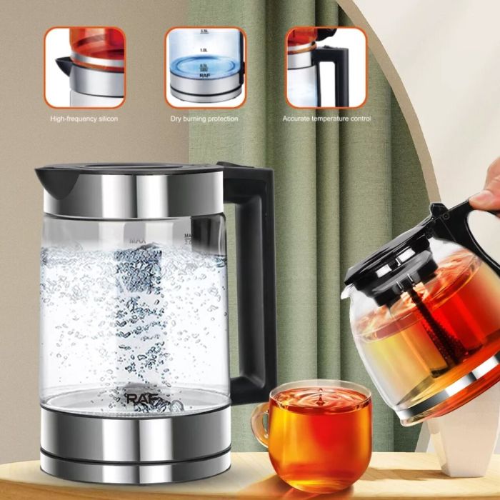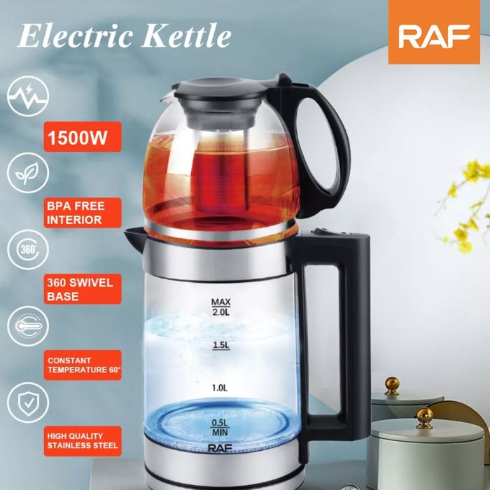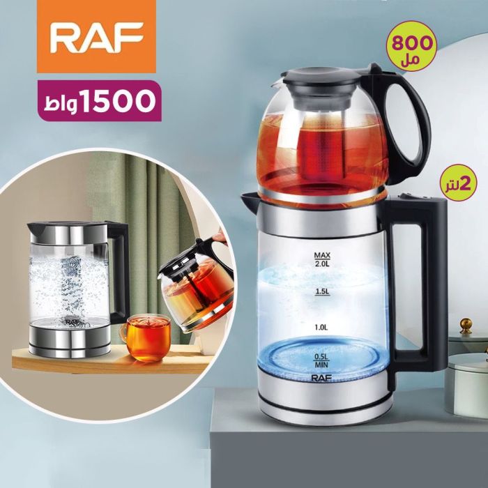 صفقة اليوم هي غلاية كهربائية زجاجية مزدوجة 1500 واط 2 لتر مع إبريق 0.8 لتر من RAF