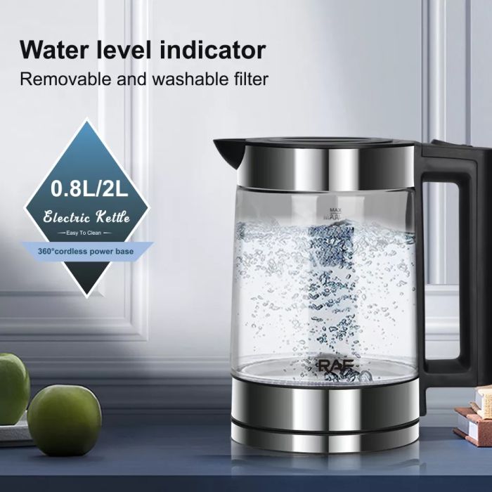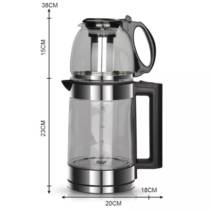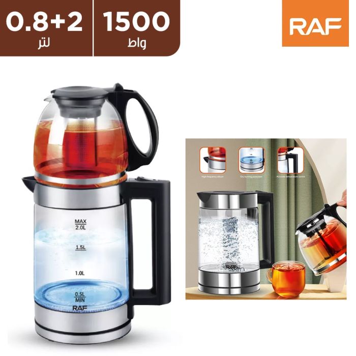 غلاية كهربائية زجاجية مزدوجة 1500 واط 2 لتر مع إبريق 0.8 لتر من RAF