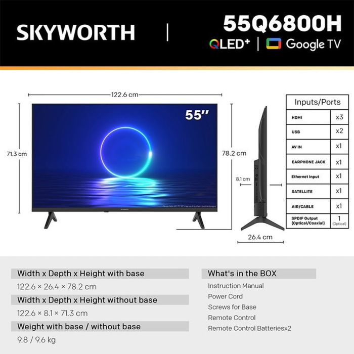 - تلفزيون أندرويد ذكي مقاس 55 بوصة QLED UHD-4K من Skyworth