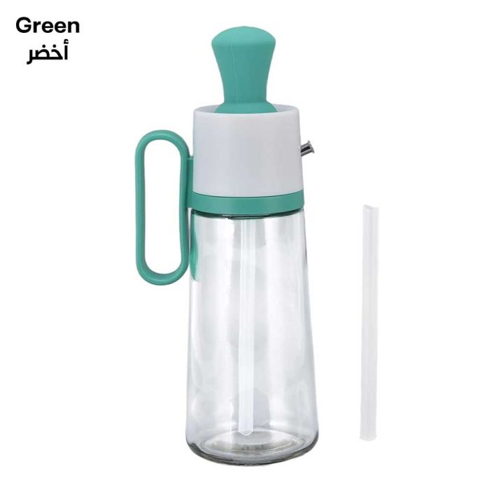 زجاجة توزيع زيت عملية مع فرشاة مدمجة ومقياس دقيق، مثالية للطهي والشواء وتوزيع الزيت أو الصلصات بسهولة.