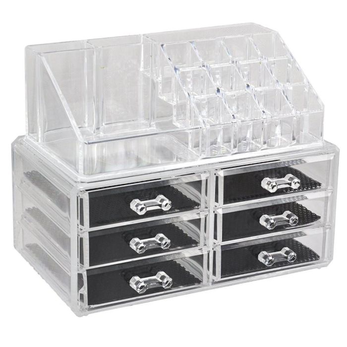 صفقة اليوم هي صندوق تنظيم مستحضرات التجميل والمجوهرات من الأكريليك مع 6 أدراج