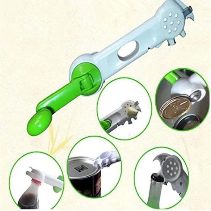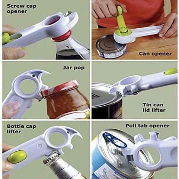 - أداة مطبخ متعددة الوظائف 6 في 1 لفتح العلب والزجاجات والبرطمانات والأغطية.