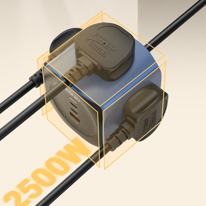 - اشتراك كهرباء 3 مخارج مع منفذ USB ومنافذ USB-C PD ثنائية بقوة 65 واط 2 متر من LDNIO