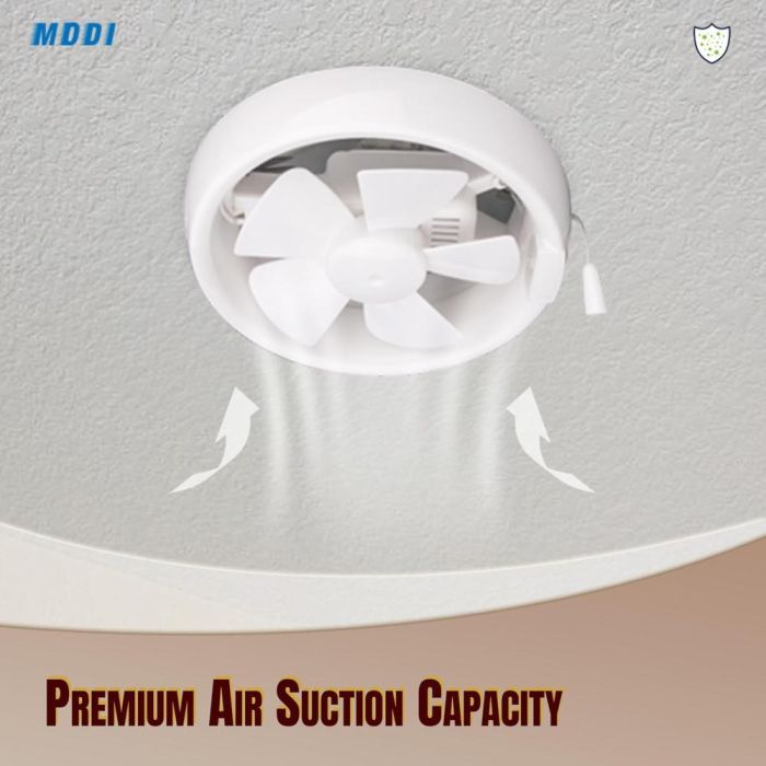 - يطرد بفعالية الهواء العادم، الرطوبة، البخار، والروائح الكريهة من الغرف