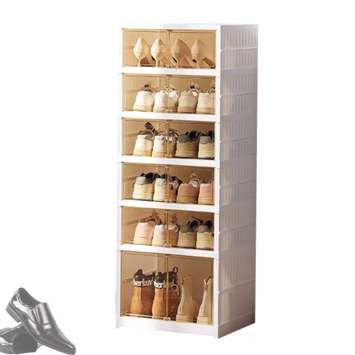 منظم أحذية عصري بتصميم قابل للطي يمكن استخدامه في أماكن مختلفة مثل خزانة الملابس وغرف النوم ومداخل الأبواب والممرات. كما يُظهر لك التصميم الشفاف الأحذية التي بداخلها بوضوح من جميع الزوايا، مما يسهل عليك العثور على الحذاء الذي تريده