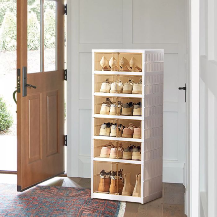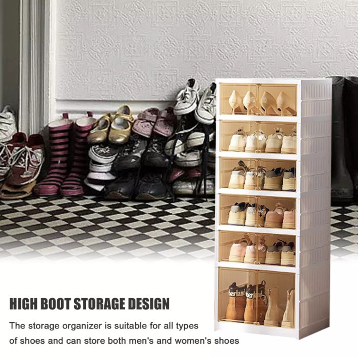 - تخزين متعدد: 6 طبقات تتسع لـ 12 زوجاً من الأحذية مع قسم سفلي للأحذية الطويلة