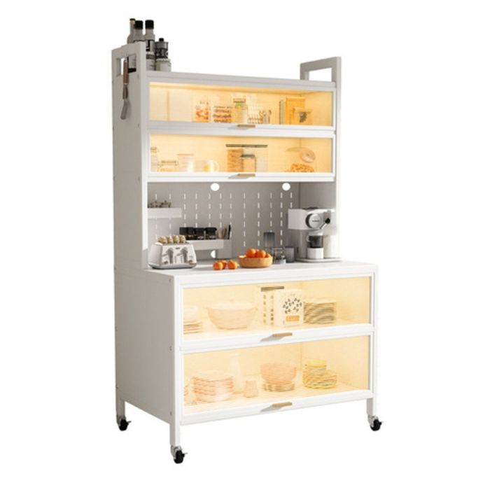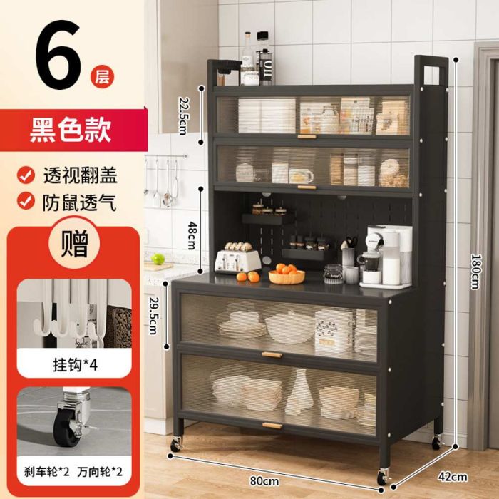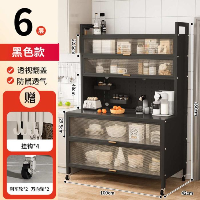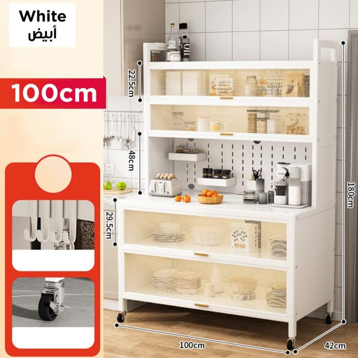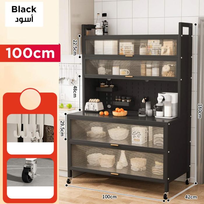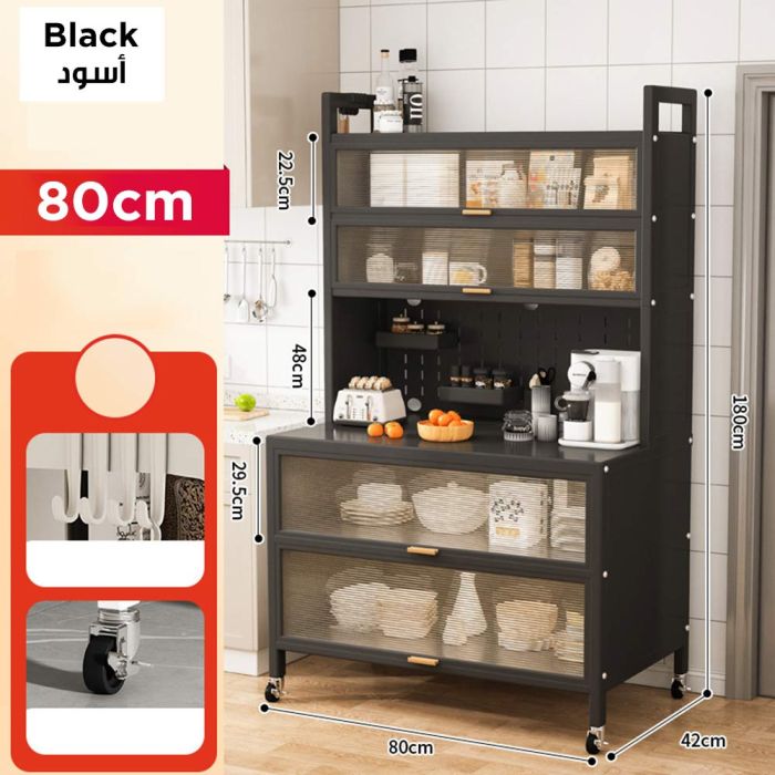 منظم معدني 4 طبقات مع أبواب وعجلات مصنوع من استيل كربوني متين مع أبواب أكريليك شفافة، تصميم مغلق جيد التهوية، يوفر مساحات تخزين مرتبة، مزود بعجلات لسهولة التحريك، مناسب لتنظيم أدوات المطبخ بشكل أنيق