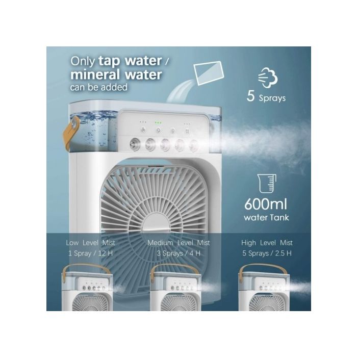 - مروحة تبريد صغيرة برذاذ الماء سعة 600 مل مع ضوء LED من 7 ألوان