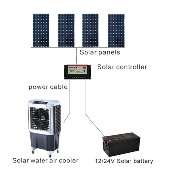 - مبرد هواء بالطاقة الشمسية 60 لتر مع ريموت