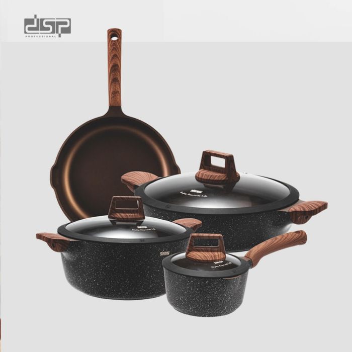 امنح مطبخك ترقية عملية مع هذا الطقم المتكامل المكوّن من 7 قطع والمصمم ليمنحك تجربة طبخ سهلة ومريحة يومياً. يتميز كل قدر ومقلاة بطبقة سيراميك ماربل غير لاصقة توفر انزلاقاً سلساً للطعام وتنظيفاً سريعاً مع إمكانية الطهي باستخدام كمية أقل من الزيت. يوزع الطقم الحرارة بشكل متساو لضمان نتائج مثالية، بينما تضيف المقابض ذات المظهر الخشبي لمسة عصرية وتمنحك قبضة آمنة ومريحة. يناسب جميع أنواع المواقد مثل الغاز والكهرباء والسيراميك، كما أنه مصنوع بجودة عالية ليقدّم أداءً يدوم طويلاً.