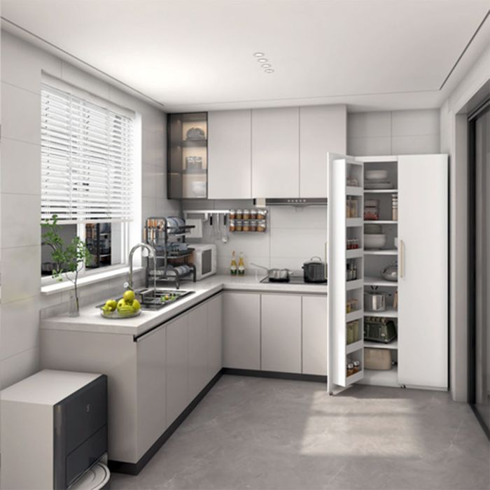 - منظم مطبخ معدني 7 طبقات مع أبواب بأرفف جانبية