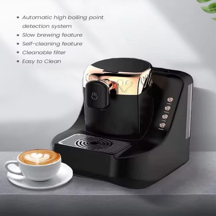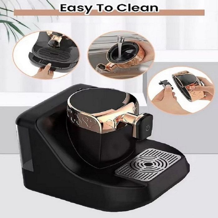 تتيح لك ماكينة صنع القهوة التركية هذه الاستمتاع بفنجان قهوة ساخن وغني في أي وقت تريده. مع نظام الغليان التلقائي ونظام التخمير البطيء وإمكانيات التسخين السريعة، تأخذك هذه الماكينة إلى مستوى جديد من الراحة والتميز، بالإضافة إلى ذلك، توفر خاصية التنظيف الذاتي صيانة سهلة ومريحة، مما يجعل هذه الماكينة الخيار المثالي لمحبي القهوة