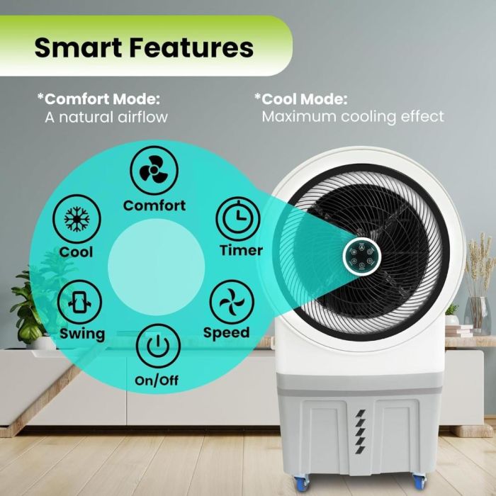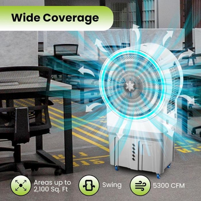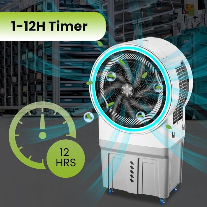 استمتع بتبريد مريح وفعال مع مبرد الهواء المحمول من Hi-Tex بسعة 70 لتر. يأتي مزودًا بـ 4 عجلات قوية لسهولة التنقل بين الغرف، بالإضافة إلى ريموت كنترول للتحكم عن بُعد بكل سهولة. يوفر 3 سرعات مختلفة للمروحة لتناسب احتياجاتك، مع تدفق هواء قوي يصل إلى 9000 م³/ساعة.