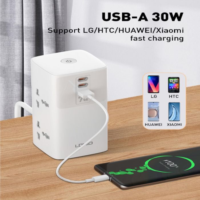 صفقة اليوم هي وصلة اشتراك كهربائي 4 مخارج مع منفذ USB و2 منفذ USB-C PD بقوة 70 واط 2 متر من LDNIO