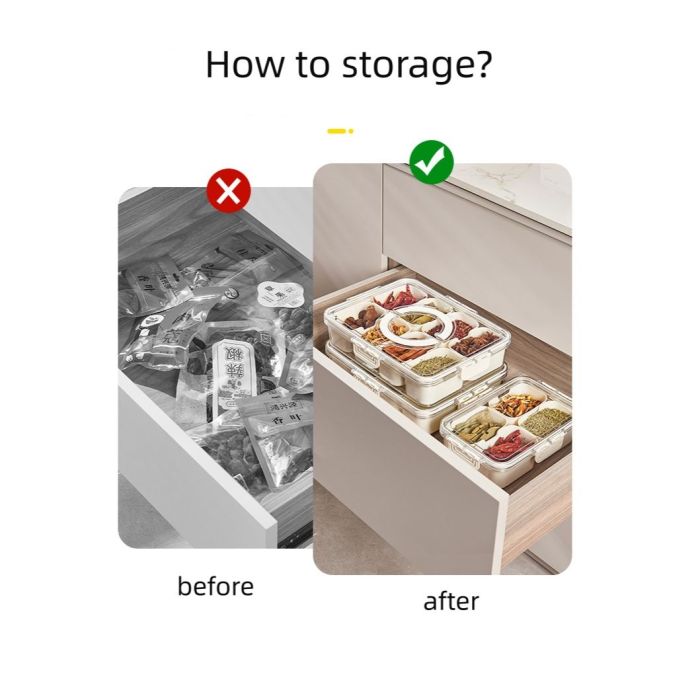 مثالية للمكسرات والحلويات. يضم ثمانية أقسام منفصلة، فهو يحافظ على الوجبات الخفيفة منظمة وطازجة. يوفر الغطاء الشفاف سهولة الرؤية والحماية، مما يجعله مثاليًا للحفلات والتجمعات.