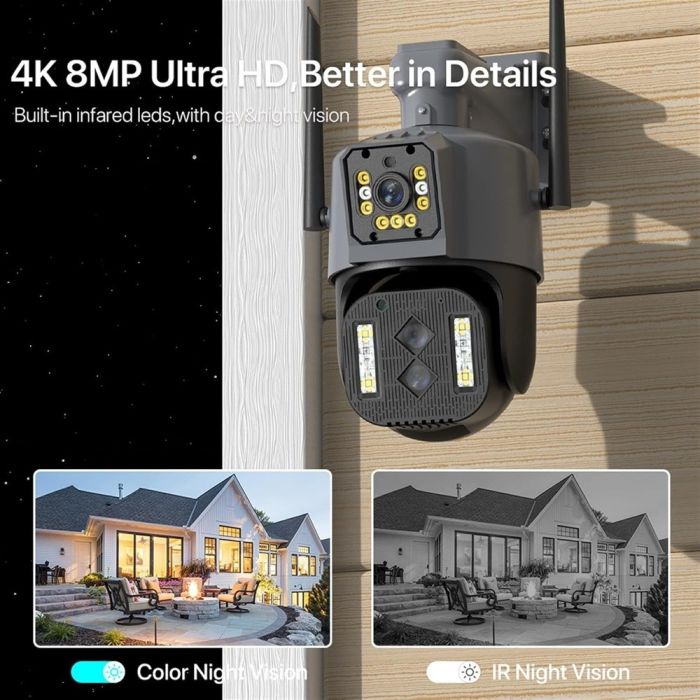 - كاميرا مراقبة واي فاي مزدوجة 8 ميجابكسل