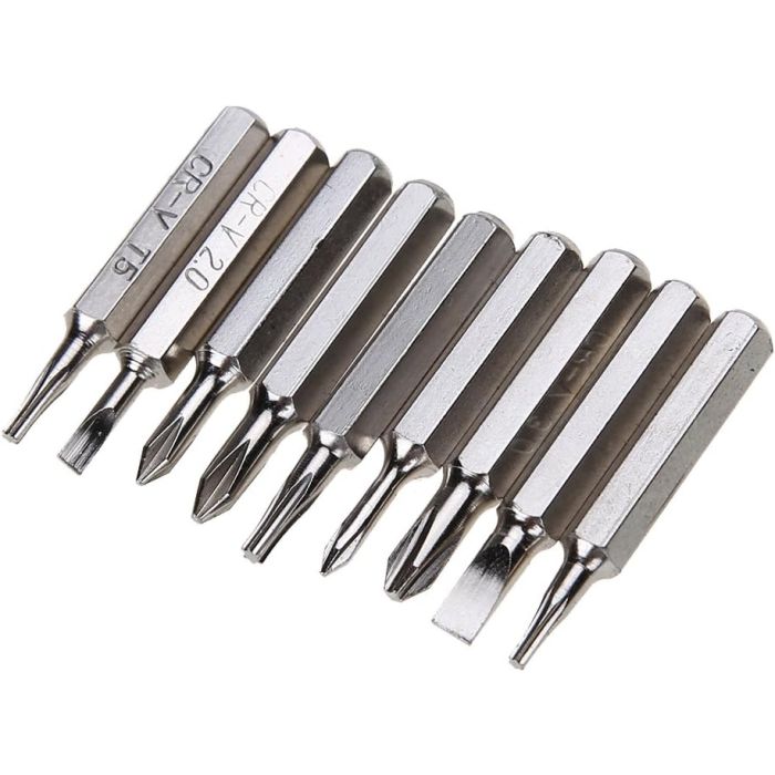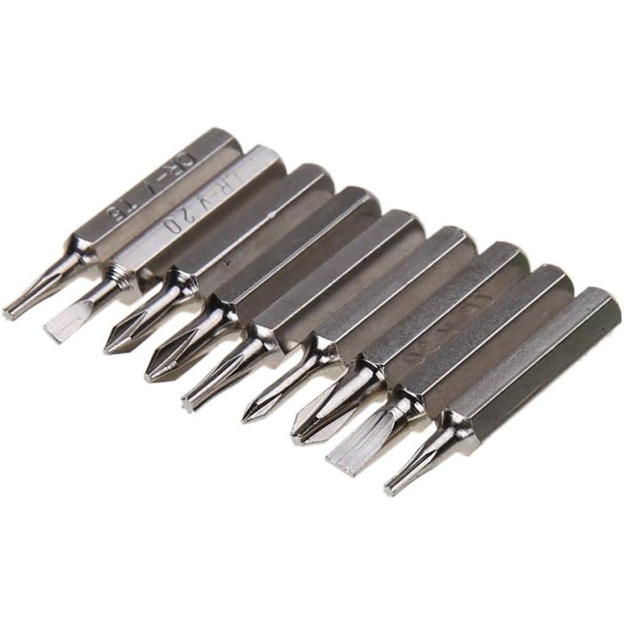 - يتضمن مجموعة متنوعة من رؤوس البراغي للتعامل مع أنواع مختلفة من البراغي، مما يجعله مثاليًا للأجهزة الإلكترونية والساعات وغيرها من الإصلاحات الصغيرة.