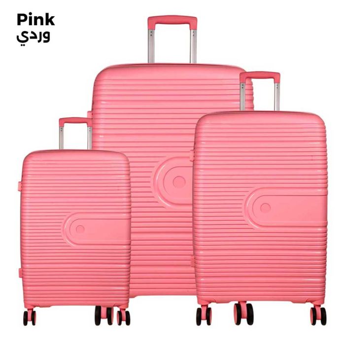 - طقم حقائب سفر ترولي ABS وردي - 3 حبة