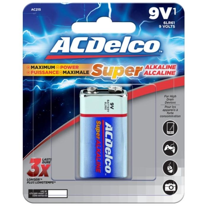 طقم 1 بطارية 9 فولت Maximum Power Alkaline من AC Delco
