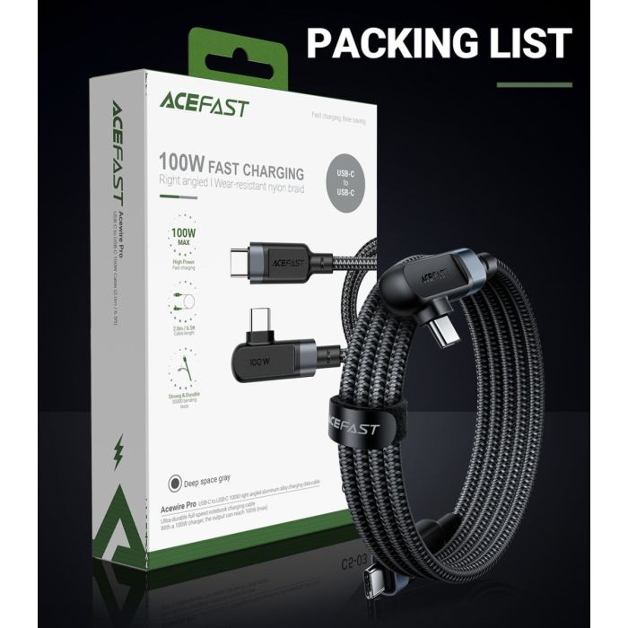 - كيبل للشحن ونقل البيانات Type-C إلى Type-C بقوة 100 واط من Acefast