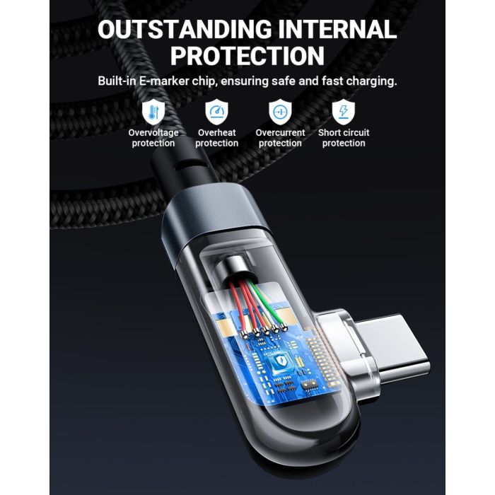 - يدعم اتصال USB-C إلى USB-C بزاوية قائمة