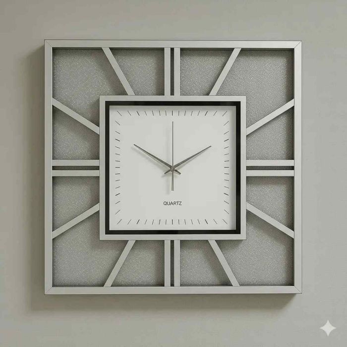 أضف لمسة من الفخامة والتميز إلى جدرانك مع ساعة الحائط المربعة من مجموعة Noralie. إطارها المزخرف بالمرآة والحواف المشطوفة مع لمسات من الكريستال الصناعي يمنحها حضوراً قوياً يلفت الأنظار، بينما يضفي قرص الأرقام الرومانية لمسة كلاسيكية تعكس الذوق الرفيع. إنها ليست مجرد ساعة بل قطعة فنية تبرز قوة التصميم في أي مساحة.