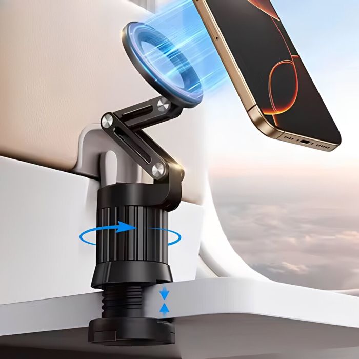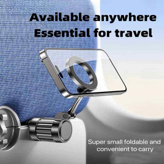 استمتع براحة الاستخدام أينما ذهبت مع قاعدة الهاتف المغناطيسية القابلة للتعديل، رفيق السفر الأمثل لمشاهدة الفيديو، وإجراء مكالمات الفيديو، أو متابعة أعمالك، مصممة لأجهزة iPhone المزودة بتقنية Magsafe، ومتوافقة عالمياً مع الأجهزة المحمولة الأخرى، وتثبت بإحكام على المكاتب، طاولة الطعام بالطائرة أو مسند الرأس بالسيارة، مما يجعلها مثالية للرحلات الجوية والاستخدام المكتبي