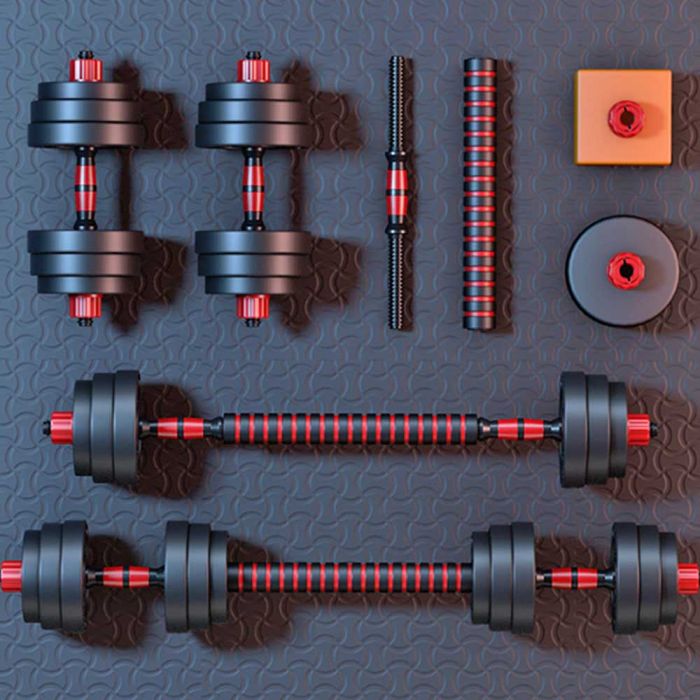 - مجموعة دمبل وبار 40 كجم قابلة للتعديل