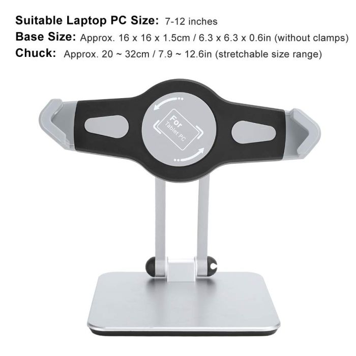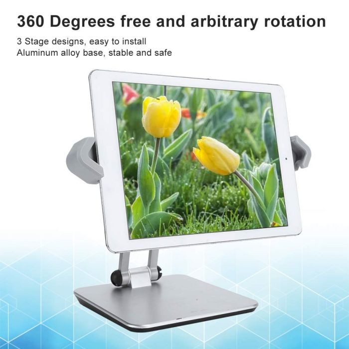استمتع بالراحة والمرونة مع قاعدة الأجهزة اللوحية هذه. تتميز بتصميم قابل للدوران 360° لتوفير زوايا مشاهدة مثالية، مع نظام تثبيت مرن يناسب الأجهزة اللوحية من 7 إلى 12 بوصة. بفضل القاعدة الألومنيوم القوية، توفر ثباتًا وأمانًا أثناء الاستخدام، بينما يضمن التصميم القابل للتعديل سهولة التثبيت والفك. مثالية للاستخدام في المكتب، الدراسة، أو مشاهدة الفيديوهات، مع خامات عالية الجودة وعملية تدوم طويلًا.