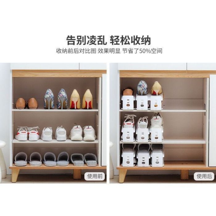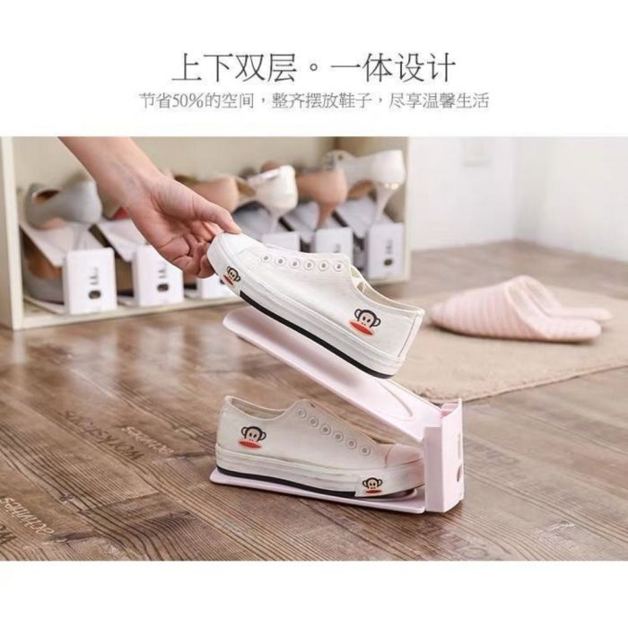 منظم أحذية مزدوج قابل للتعديل مصنوع من بلاستيك متين، يساعد على ترتيب الأحذية وتوفير المساحة داخل الخزانة، تصميم بطبقتين مع ارتفاع قابل للتعديل يمنحك ترتيبًا أنيقًا وسهولة في الاستخدام اليومي