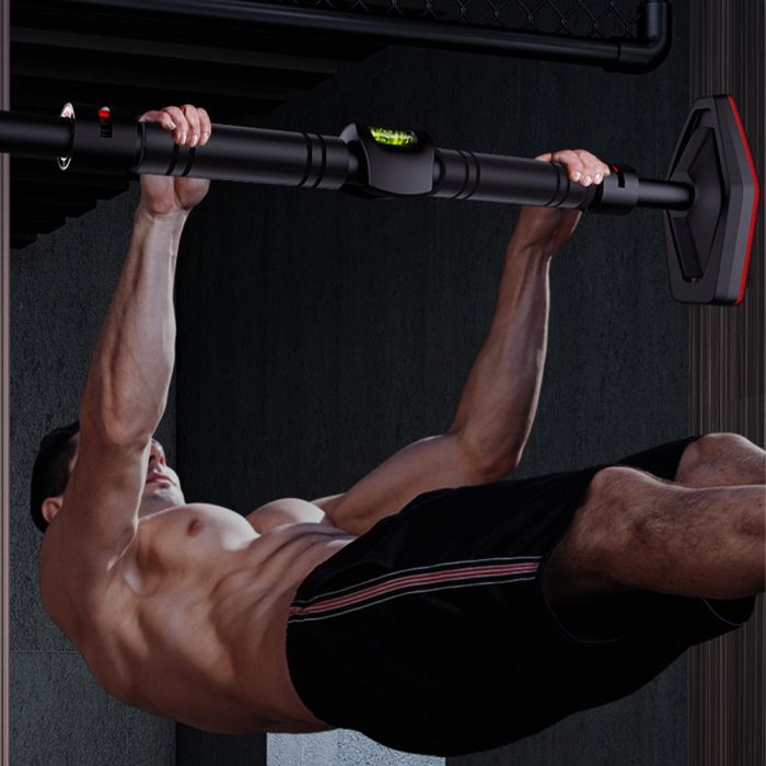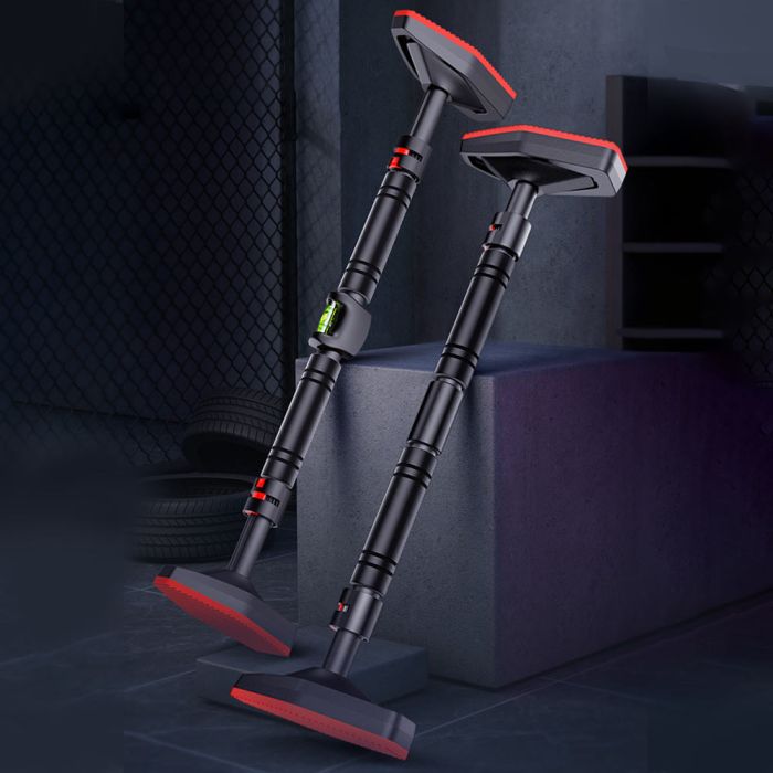 عقلة تدريب منزلية قابلة للتعديل تمنحك ثباتًا مثاليًا أثناء التمرين، مصنوعة من فولاذ متين بآلية تثبيت مثلثية وقاعدة مطاطية مانعة للانزلاق، مزودة بميزان مستوى لتثبيت دقيق وسهلة التركيب دون حفر، تتحمل حتى 360 كجم.