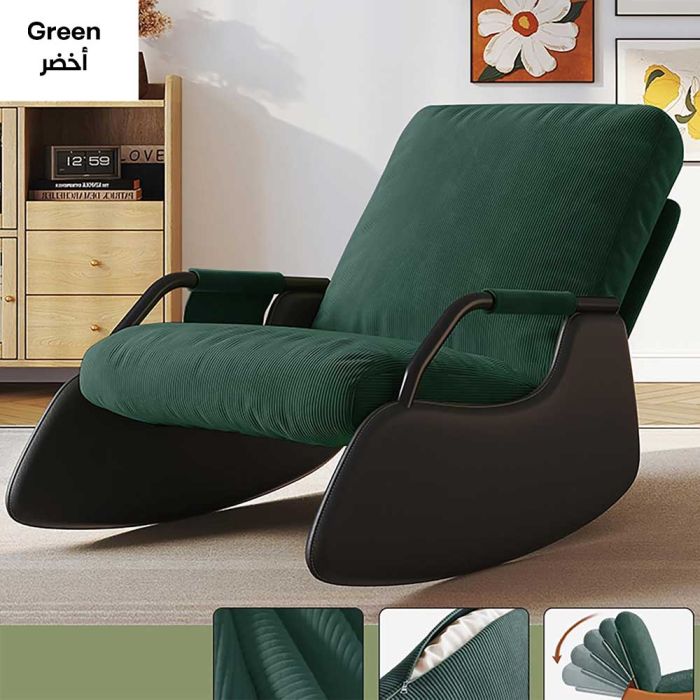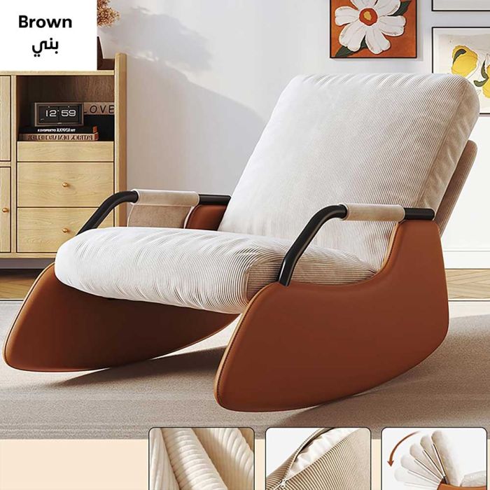 يعد هذا الكرسي الهزاز القابل للتعديل إضافة مريحة ومتعددة الاستخدامات لغرفة المعيشة، غرفة النوم أو البلكونة، يتميز بمقعد كبير مع مساند للذراعين، مما يوفر مساحة واسعة وراحة إضافية، مع 5 أوضاع للاستلقاء بزاوية من 105 إلى 165 درجة، فهو يلبي تفضيلات جميع المستخدمين