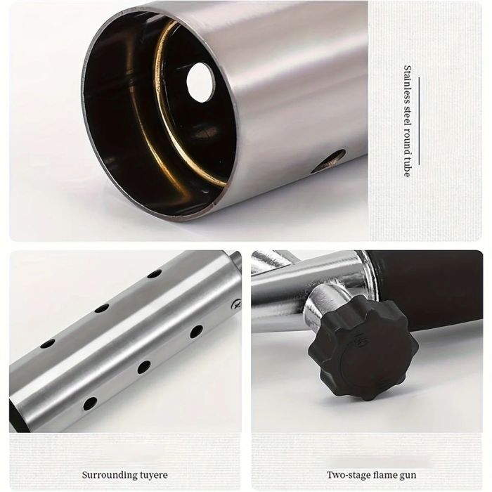 اشعل الحطب أو الفحم بسهولة وأمان مع قاذفة اللهب طويلة الذراع! تمنحك شعلة قوية تصل إلى 75 سم لإشعال الشوايات والنيران عن بُعد، مما يجعلها مثالية للحدائق والتخييم. مصممة لتحمل الاستخدام المكثف وتمنحك تحكمًا دقيقًا في اللهب. مناسبة للاستخدام مع عبوات غاز البوتان الصغيرة بسعة 230 جم.