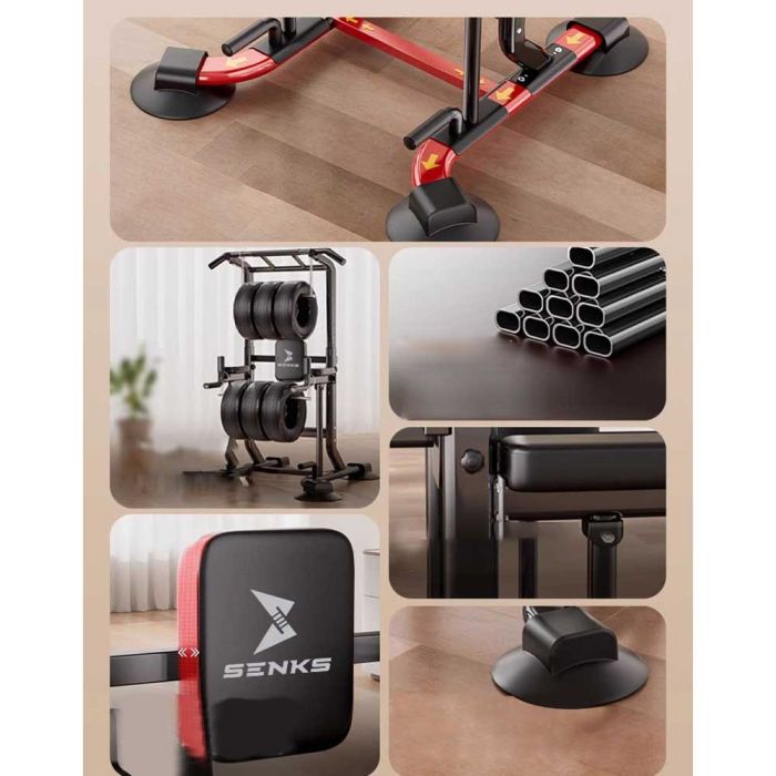 جهاز عقلة متعدد الاستخدامات قابل للتعديل مصمم بهيكل فولاذي قوي لتحمل التدريبات المكثفة وتوفير أعلى درجات الثبات. مزود بقاعدة عريضة تمنع الانقلاب أو الاهتزاز، و6 مستويات لتعديل الارتفاع بسهولة. يتميز بمساند مريحة للذراعين والظهر وطلاء مقاوم للخدش، مما يجعله مثاليًا لتمارين السحب، الضغط، شد البطن، وتمارين الساقين في المنزل أو الصالة الرياضية.