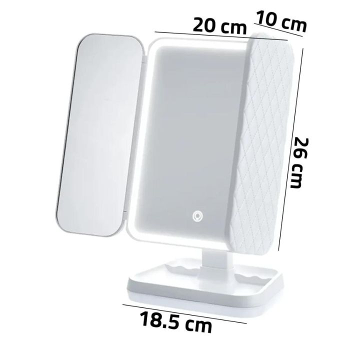 ارتقِ بتجربتك في وضع المكياج مع مرآة المكياج الذكية القابلة للتعديل والدوران. تتميز هذه المرآة بتصميم مثالي يمنحك 3 مستويات إضاءة مختلفة (دافئة، بيضاء، وبيضاء باردة)، مما يسمح لك باختيار الإضاءة المثالية لأي مناسبة، سواء كنت تستعدين للنهار أو للسهرة.