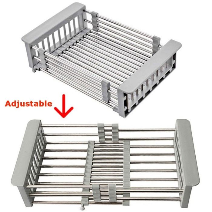 - رف تجفيف الأطباق قابل للتعديل من الستانلس ستيل لحوض المطبخ
