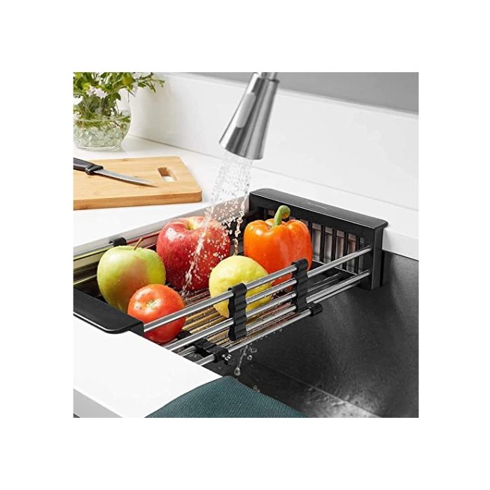 رف تجفيف الأطباق قابل للتعديل من الستانلس ستيل لحوض المطبخ