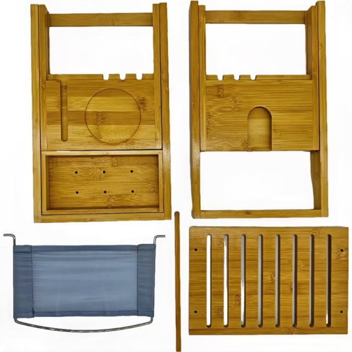 ستاند خشبي لحوض الاستحمام قابل للتعديل مصنوع من الخيزران الطبيعي، تصميم أنيق يضيف لمسة فاخرة للحمام، يوفر مساحة مريحة لوضع الهاتف أو التابلت والمشروبات، ويمنح تجربة استرخاء مرتبة وممتعة