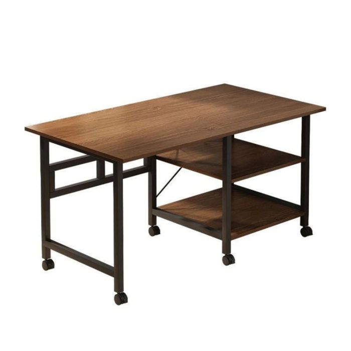 طاولة خشبية قابلة للتعديل بأرفف سفلية وعجلات