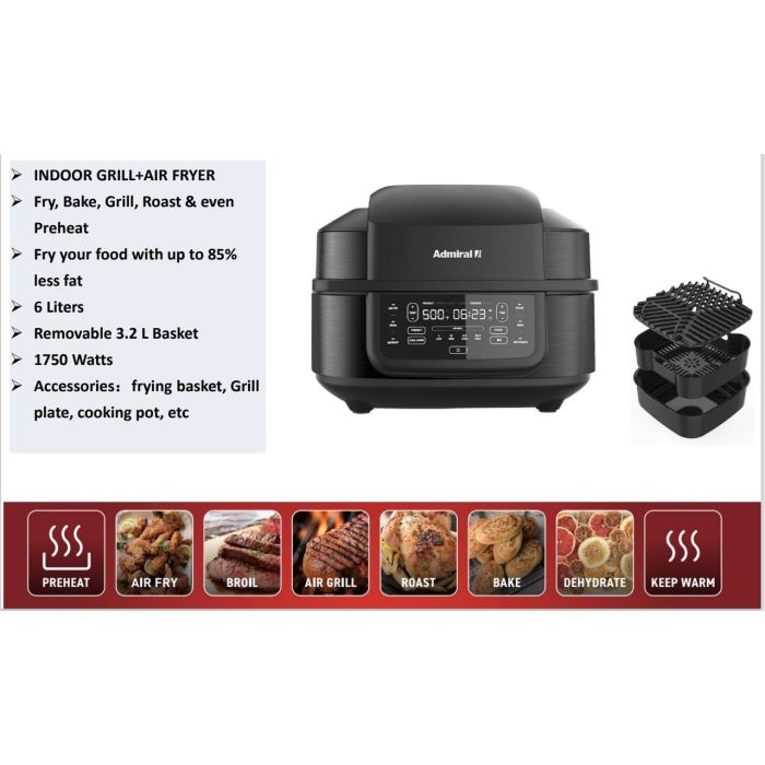 صفقة اليوم هي شواية كهربائية 1750 واط 6 لتر متعددة الاستخدامات - اسود من Admiral