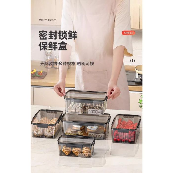 علبة حفظ طعام بلاستيك محكمة الغلق مصنوعة من بلاستيك آمن للأغذية، بتصميم شفاف أنيق يساعد على تنظيم الثلاجة، تحافظ على جودته وتمنع تسرب الهواء، مناسبة لحفظ الخضروات والفواكه والأطعمة اليومية