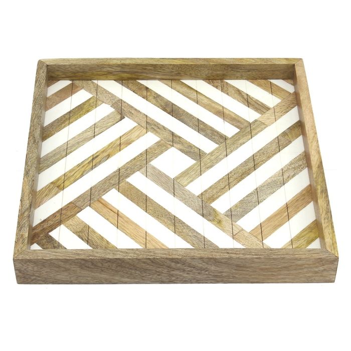 صينية من خشب المانجو والراتنج - مربعة من المنزل