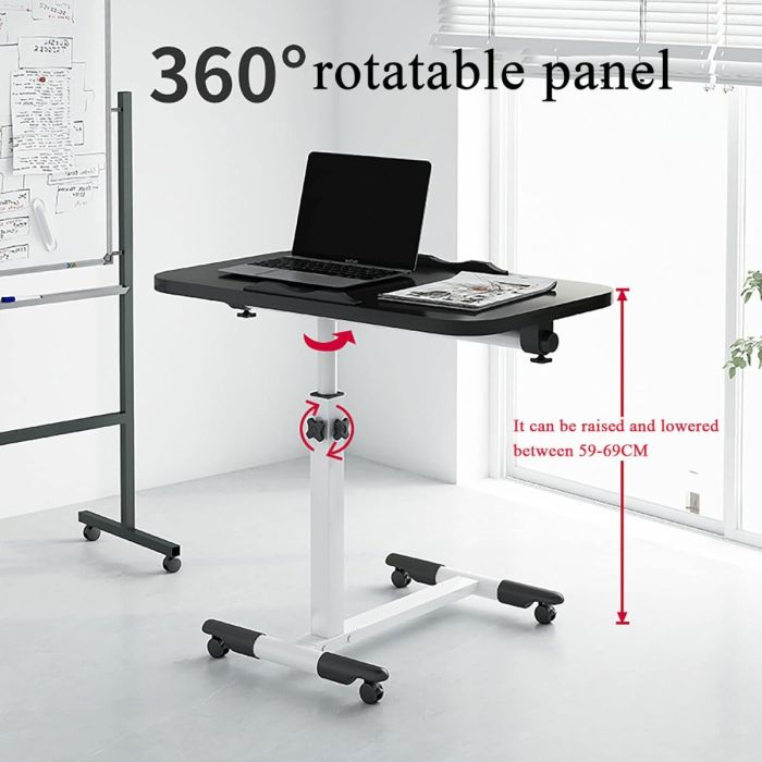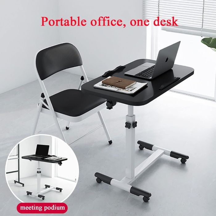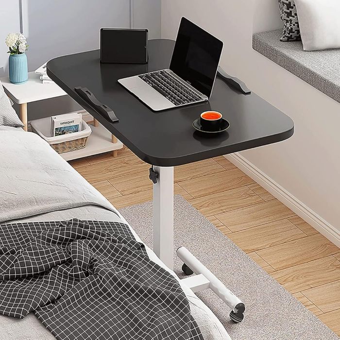 طاولة السرير المتنقلة هذه حلاً متعدد الاستخدامات للعمل، تناول الطعام، أو القراءة براحة تامة من سريرك أو أريكتك. يسمح تصميمها الذكي على شكل حرف H والعجلات الدوارة بسلاسة بالانزلاق بسهولة تحت أثاثك، مما يوفر لك الراحة أينما كنت.