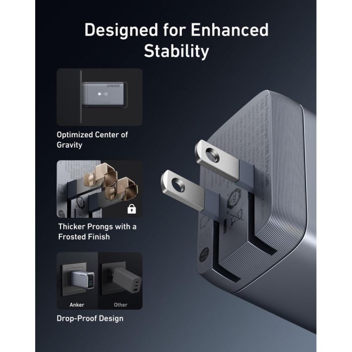 - شاحن حائط GaN منفذين Type-C ومنفذ USB-A قوة 100 واط من Anker